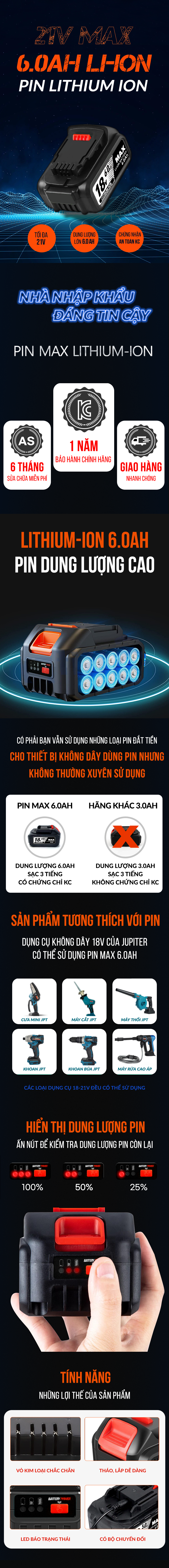 Pin Lithium ion 6Ah với dung lượng cao, sử dụng cho các sản phẩm của Jupiter